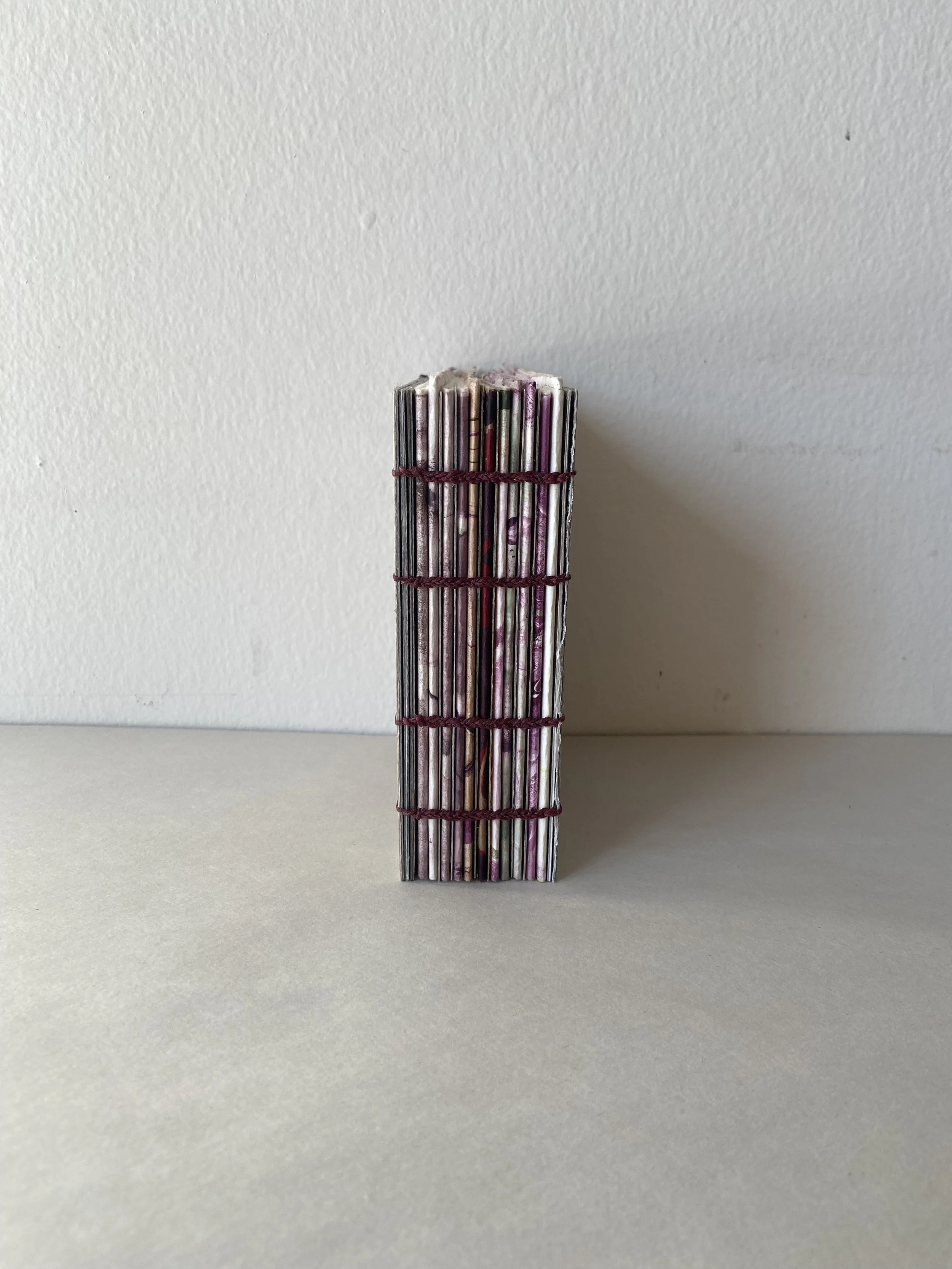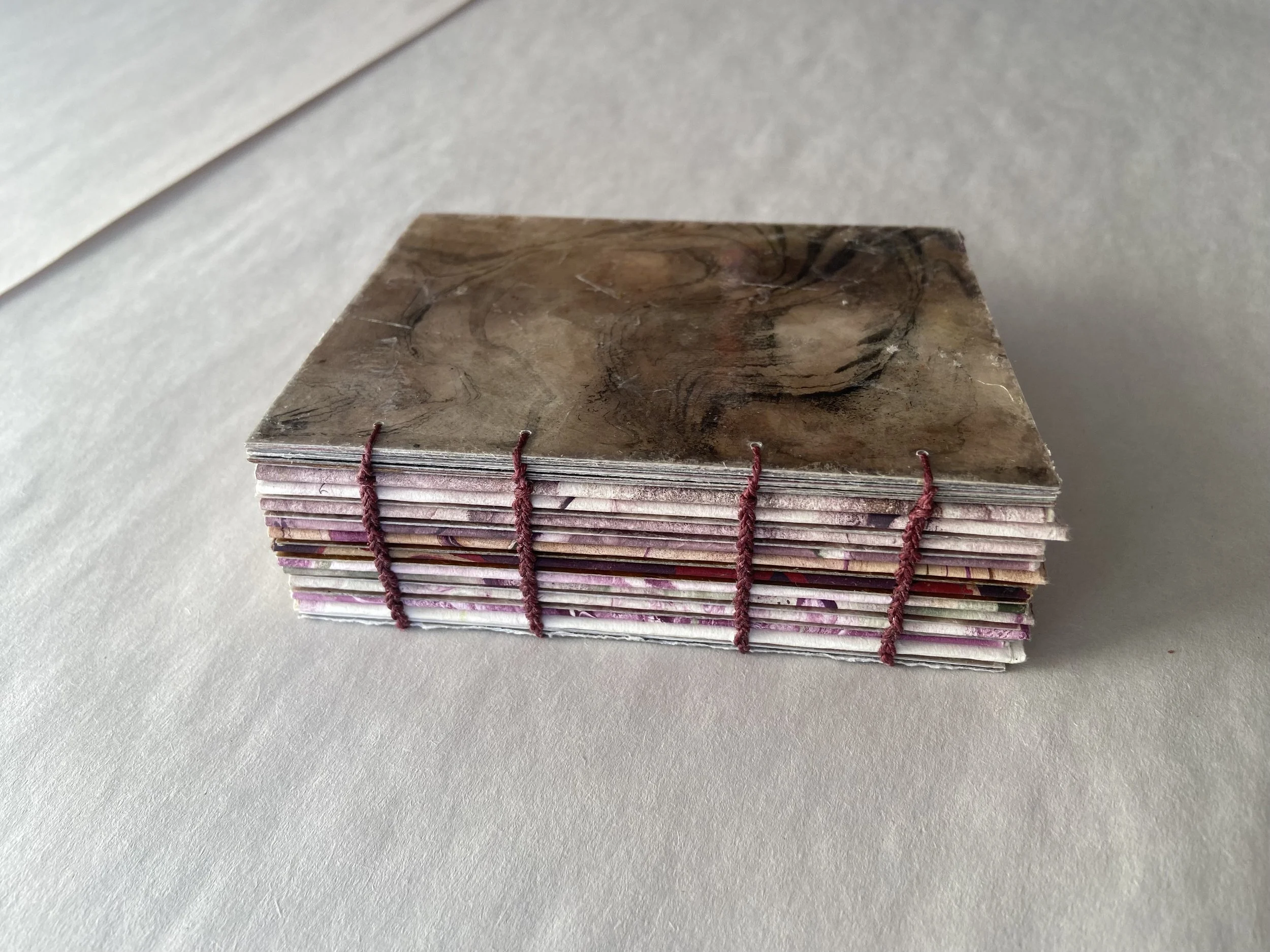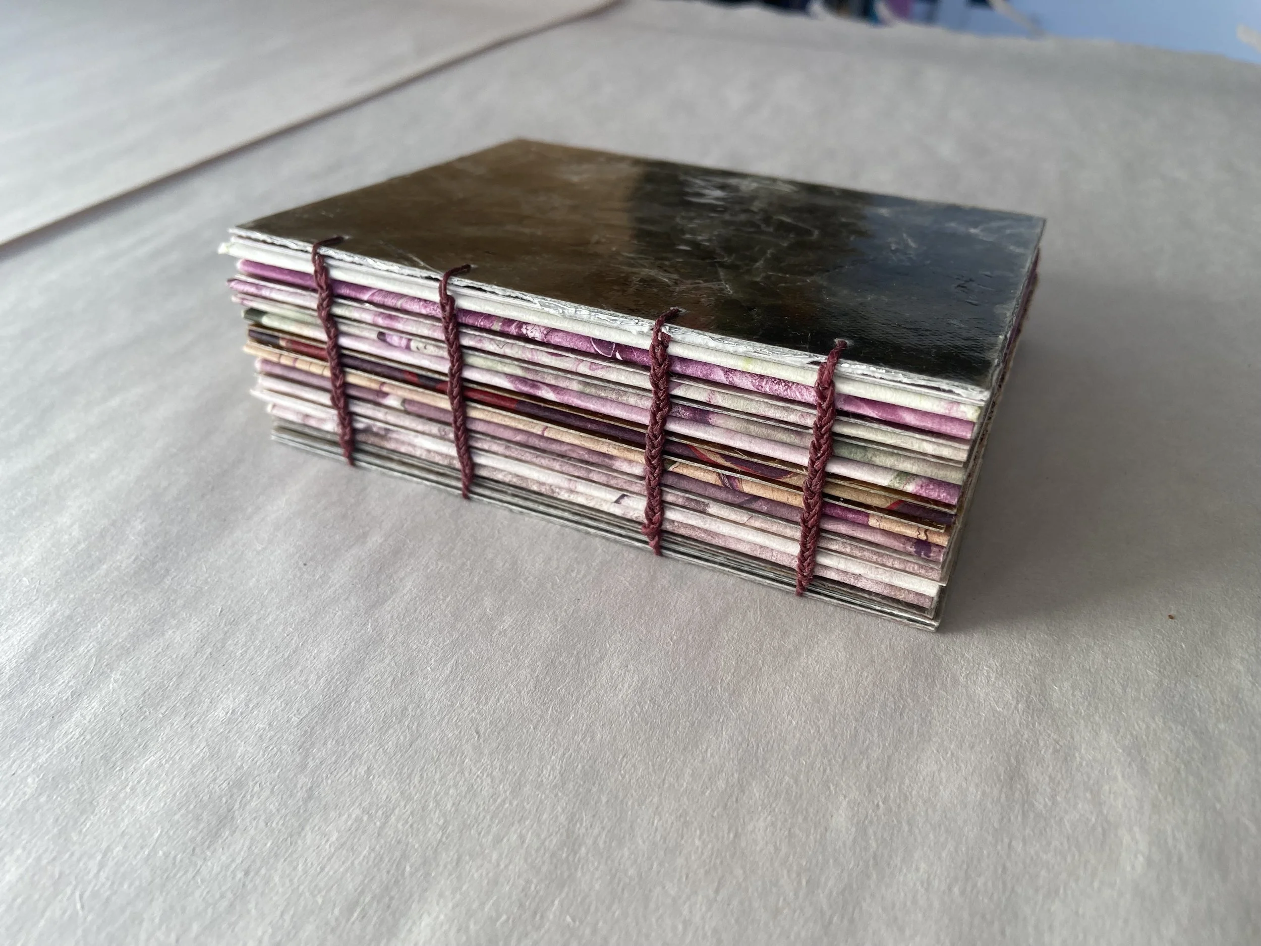 Paper, mica, waxed thread, acrylic paint, tinfoil